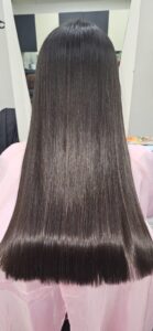 御覧のとおりクセも綺麗に伸びて毛先まで艶々サラサラです!